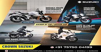 Established in 2024, CROWN Suzuki, Karelibaug is one of the most well-known and trusted Suzuki Bike Showroom in Vadodra. CROWN Suzuki is an authorised Suzuki Motorcycle Dealer with a state-of-the-art showroom where you can check out the new Avenis,take it out for a test ride, and book your dream ride. On our website, you can explore the entire range of two-wheelers by Suzuki Motorcycles. You can also find out the ex-showroom price of different variants, calculate EMI, get a callback, and even book a suitable time slot for a test ride. Check out your favourite Suzuki motorcycles and scooters conveniently, with the easy-to-use filters to simplify your search. CROWN Suzuki offers the entire range of Suzuki Motorcycles, Big Bikes, and Scooters in the Avenis from CROWN Suzuki,check out its features, take it for a ride, get a quote, and book your favourite bike from the entire range of Suzuki motorcycles and scooters in. At CROWN Suzuki, you can also avail two-wheeler finance to buy your favourite ride.